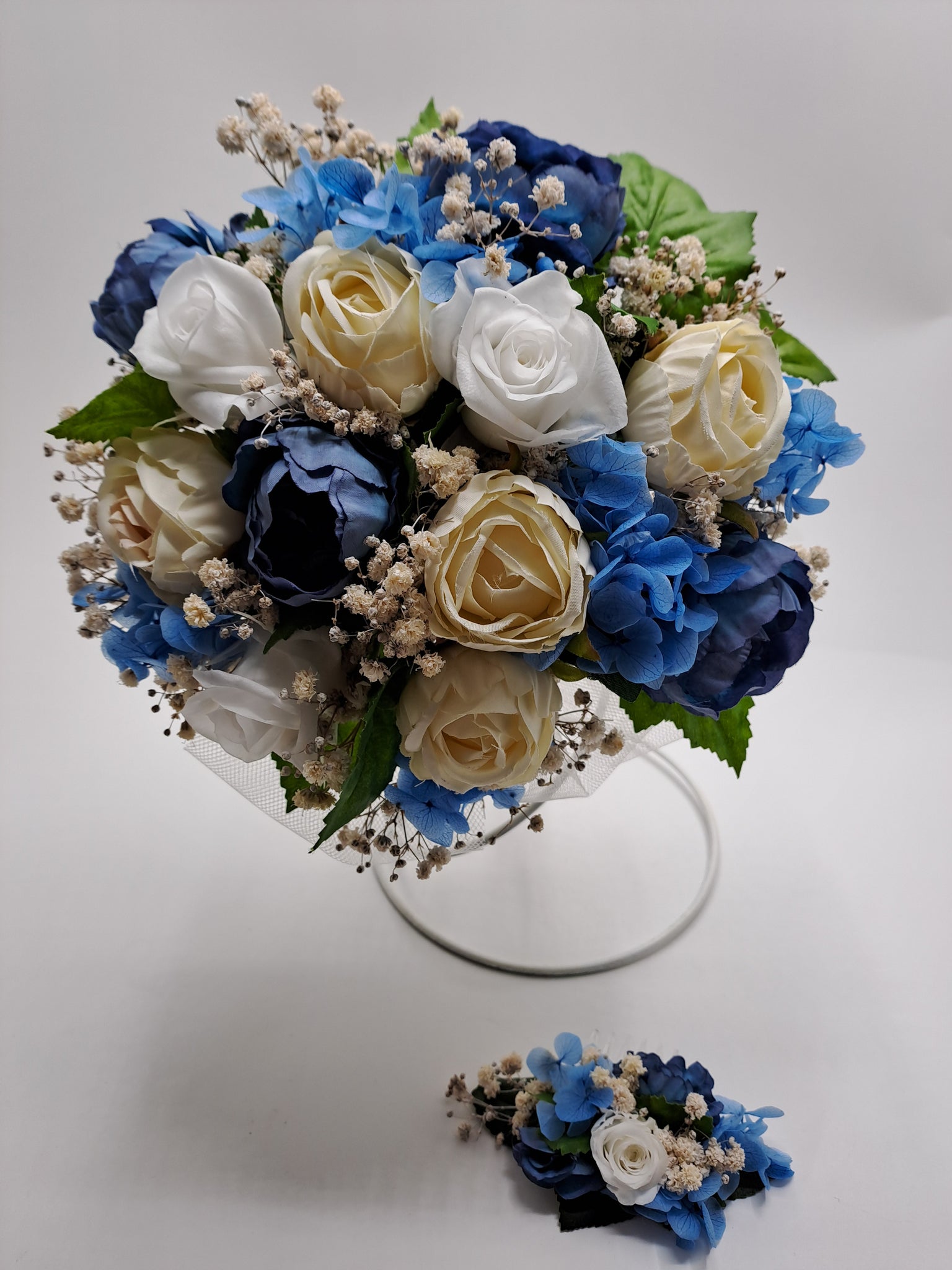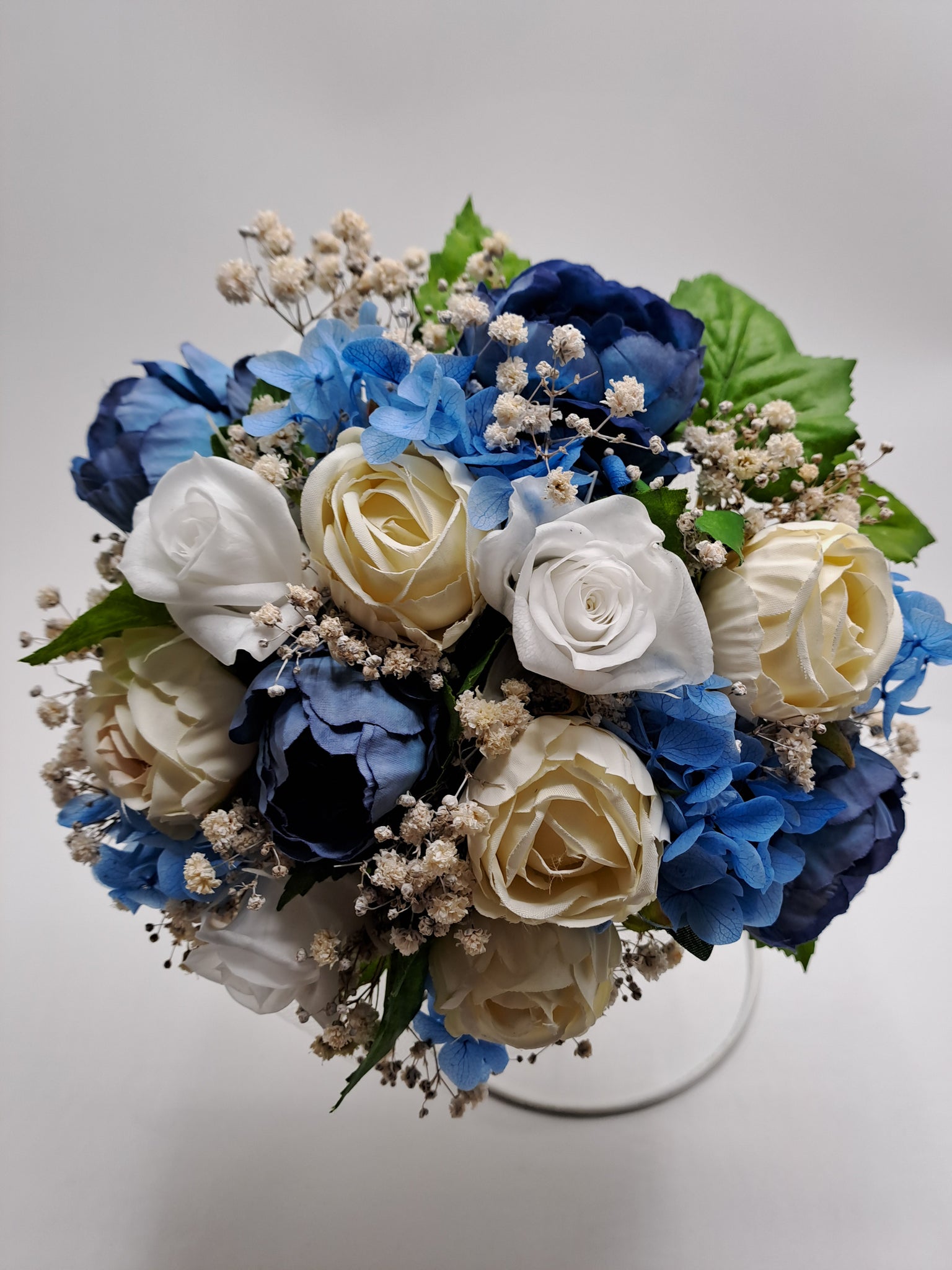 Bouquet de mariée réalisé en fleurs naturelles stabilisées et fleurs, feuillages artificiels, très réaliste, vous garderez votre Bouquet en souvenir du jour J. Coiffure assortie en option. Diamètre 22cm