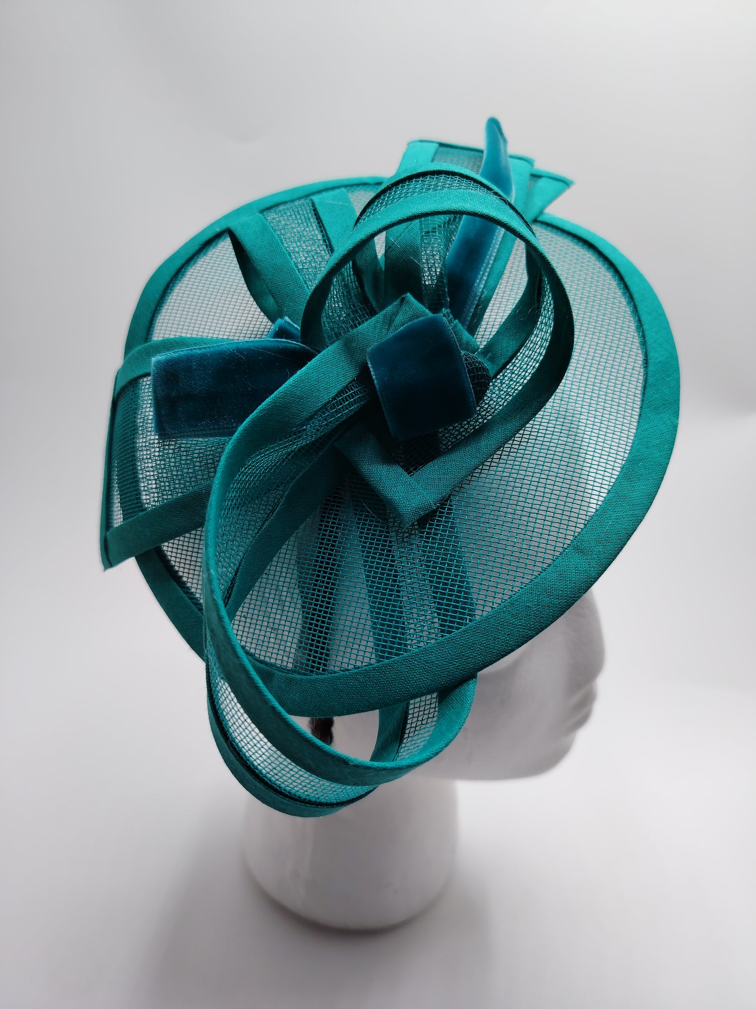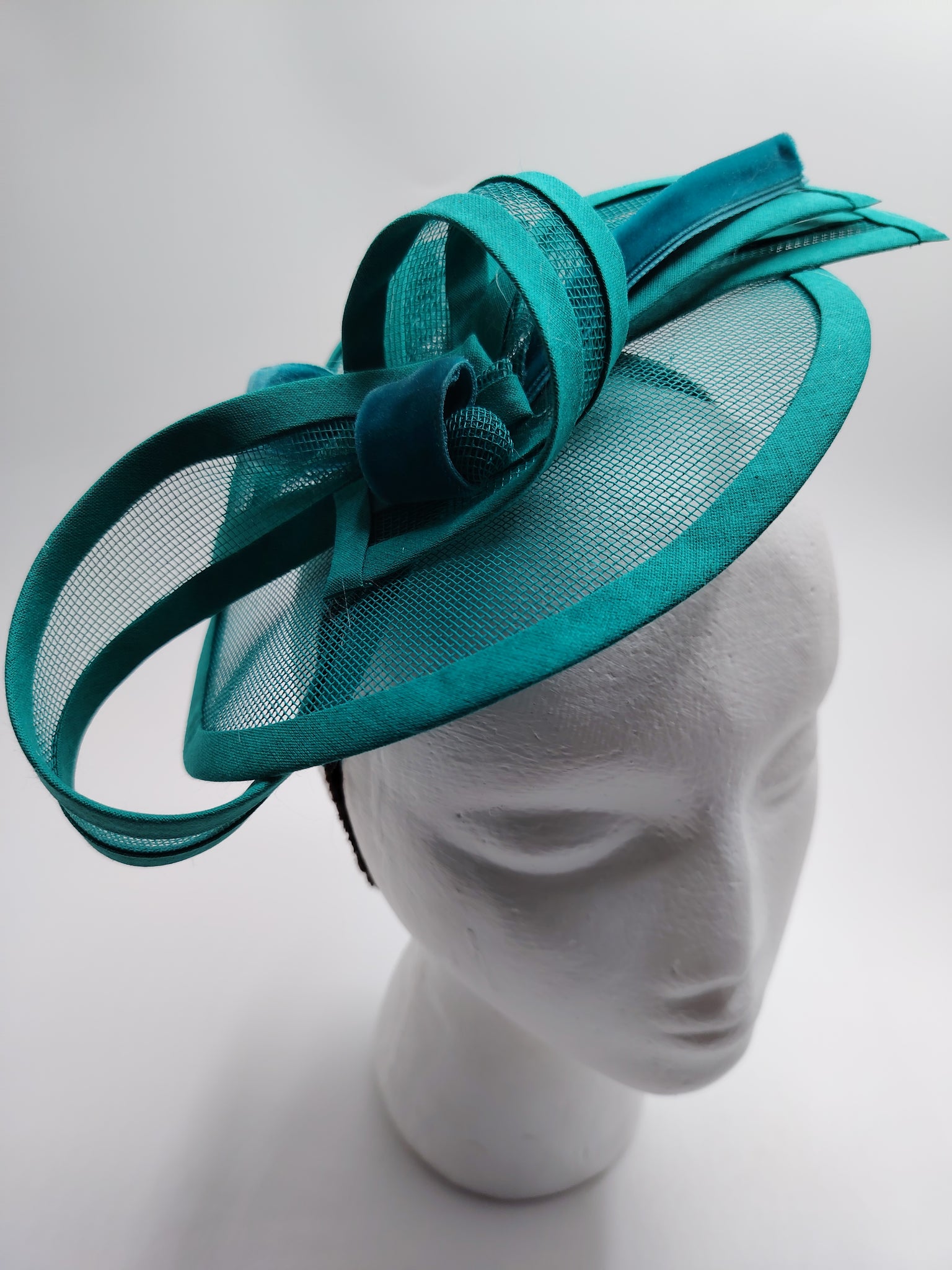Bibi réalisé en crin et biais. Monté sur un serre-tête réglable à la forme de votre tête, confortable et invisible entre vos cheveux. Dimensions 25cm de large et 17cm de profondeur