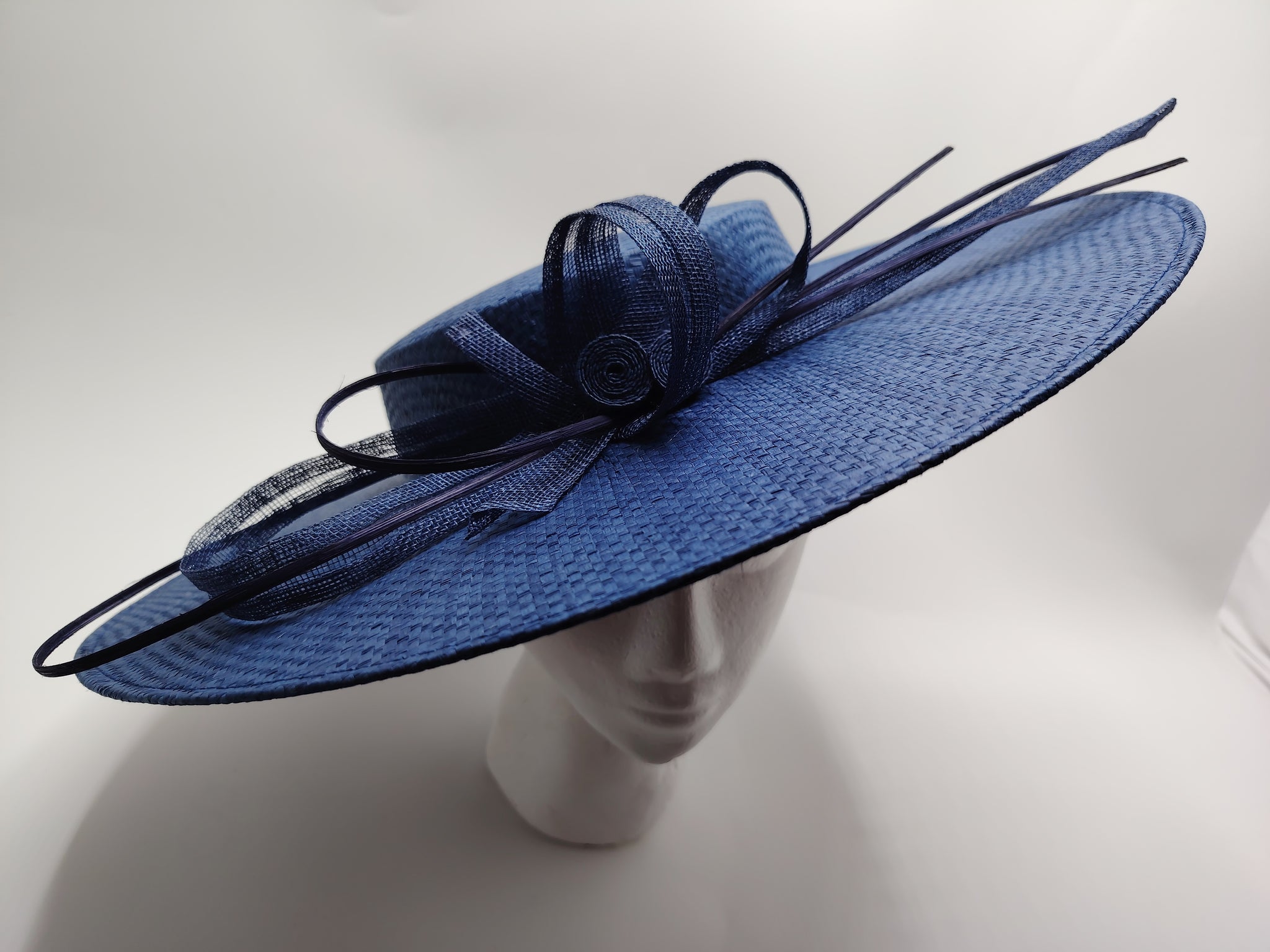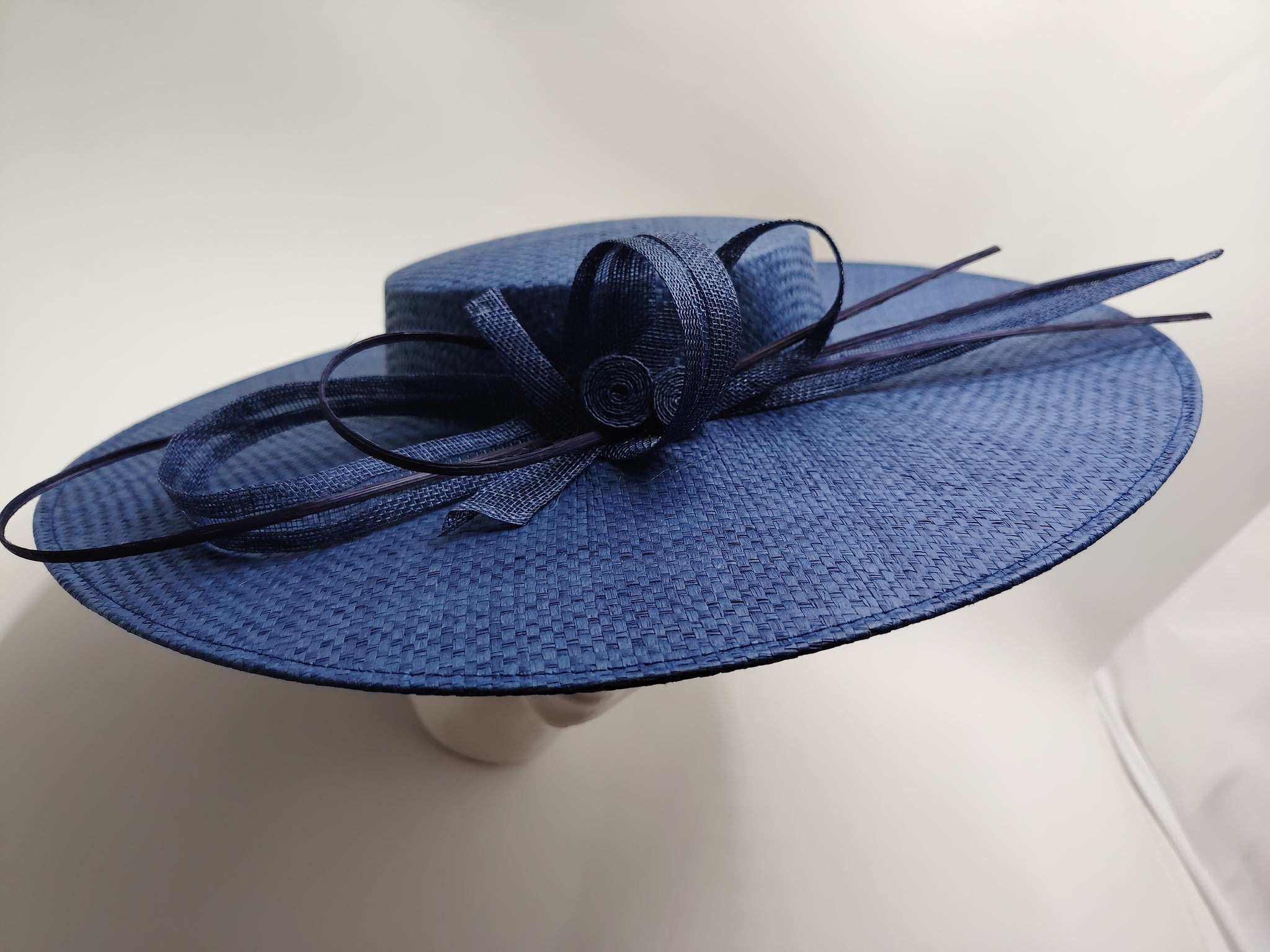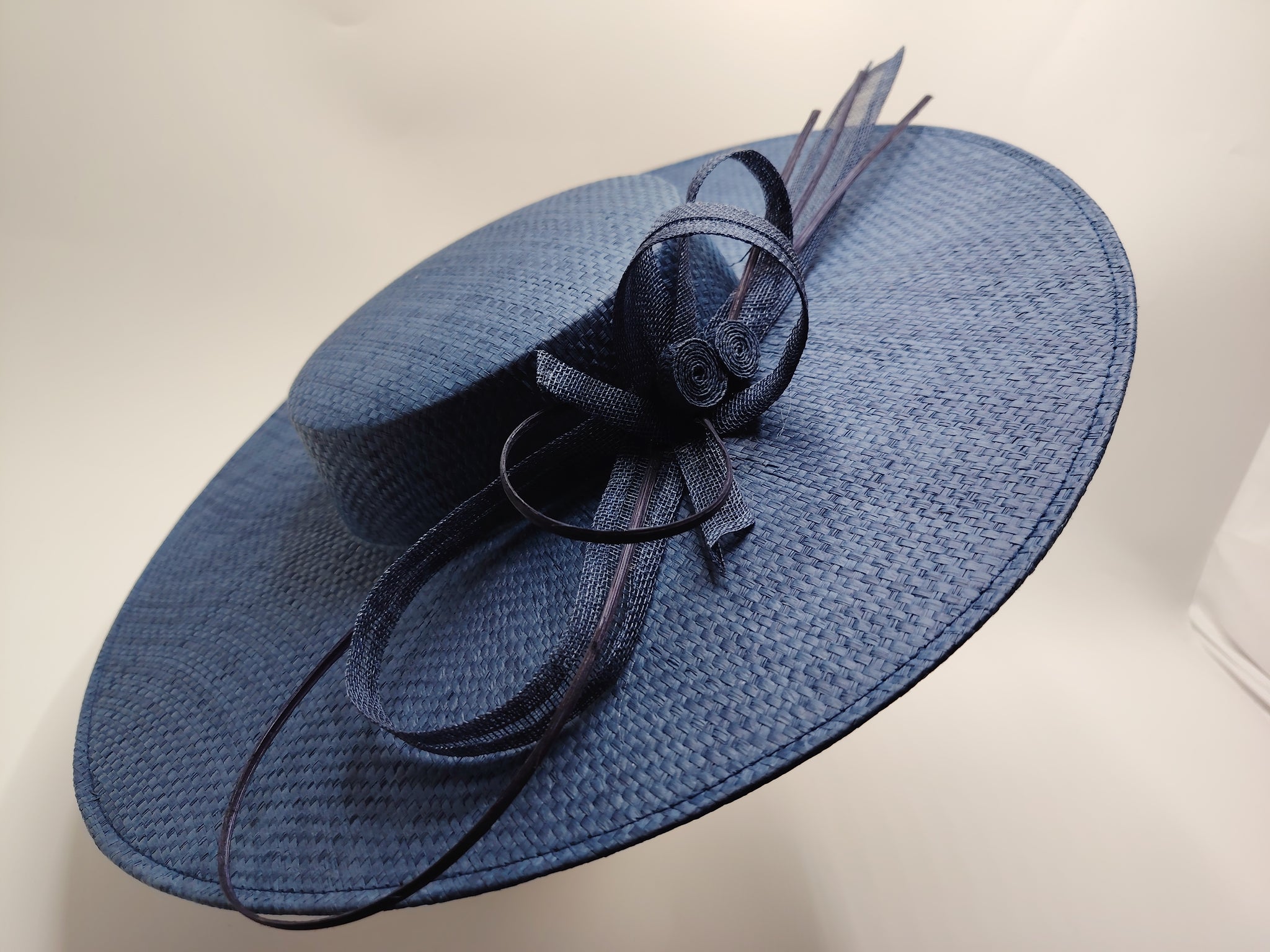 Capeline marine, réalisé en paille, abaca et joncs. Monté sur un serre-tête réglable à la forme de votre tête, confortable et invisible entre vos cheveux. Diamètre 44cm