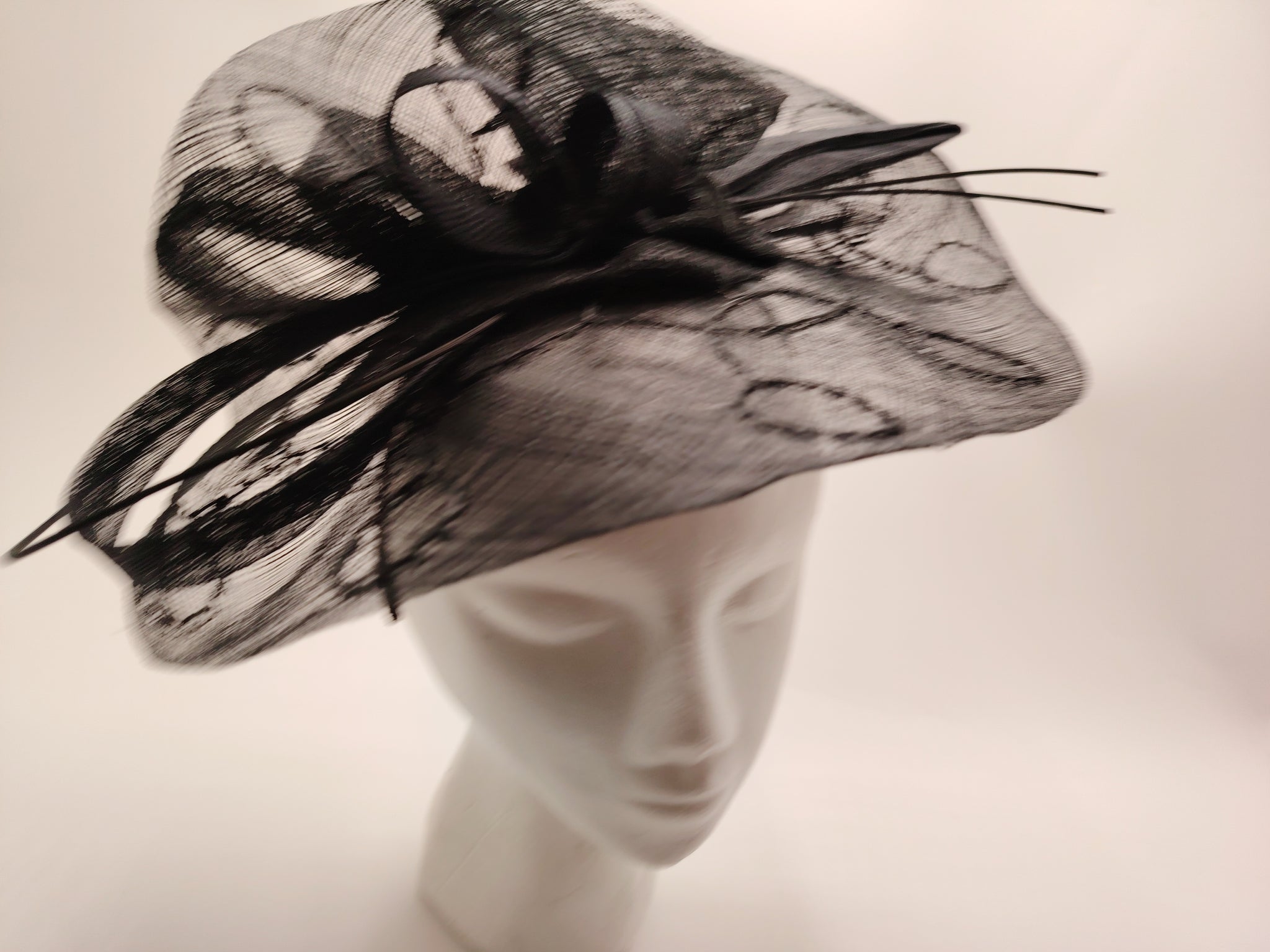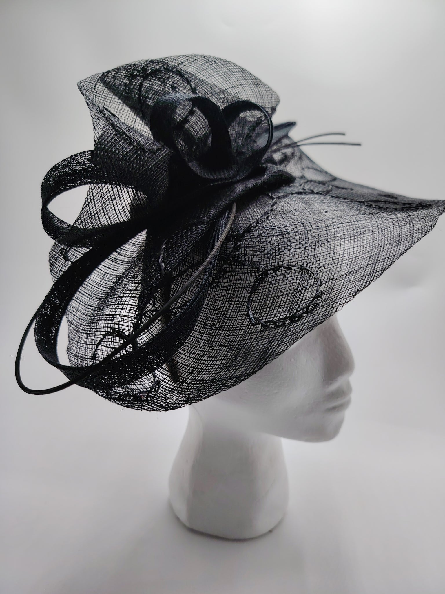 Facinator réalisé en abaca brodé de sisal, motif boucles abaca et joncs, léger, aérien , élégant. Monté sur un serre-tête réglable à la forme de votre tête, confortable et invisible entre vos cheveux. Dimensions 40cm de large, 25cm de profondeur, 9cm de haut